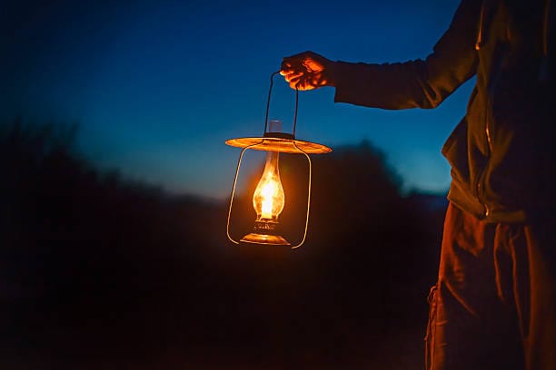 He carries only a small lantern⦠a faint, flickering light barely stronger than a candle flame.